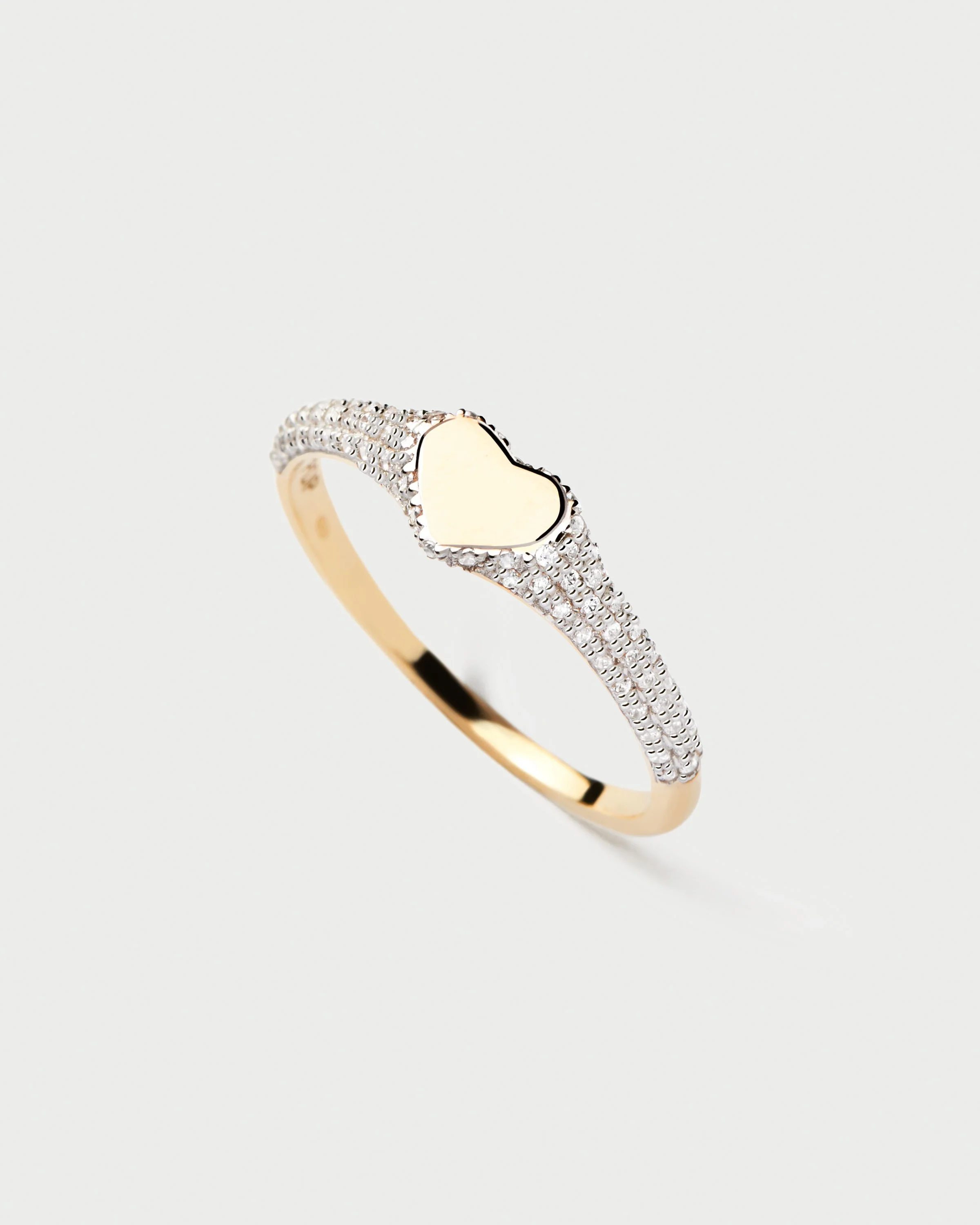-70%Diamonds and Gold Heart Stamp Ring—
